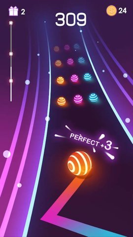 美歌大路彩球跑是一款在国外相当热门的音乐节奏类手游。这款游戏以赛博风格的科幻场景为背景,玩家需要按照音乐的节拍,引导小球沿着公路不断滚动向前。在玩家需要撞击同色小球,并收集钱币和礼盒,还要应对小球颜色的变幻,考验玩家的反应力。