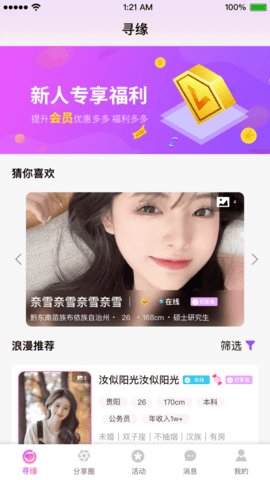 1、这个功能可以根据用户的个人资料、兴趣爱好、地理位置等信息,为用户推荐最符合他们需求的交友对象。