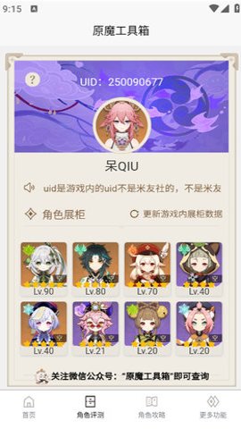 2、使用原魔工具箱手机版非常简便,只需通过原神UID绑定自己的账号,就可以使用原魔工具箱的所有功能。