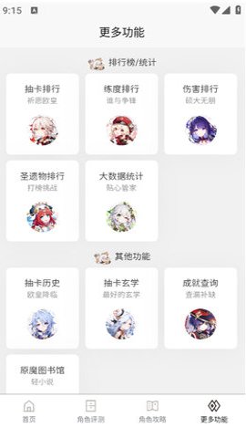 1、它主要提供抽卡查询、角色攻略、养成分析、原神图鉴、成就查询等功能,让玩家在提瓦特世界中获得更多有力的帮助。