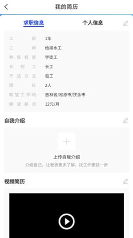 3、 用户可以通过鲁星工匠的软件完善个人信息,上传个人介绍,从而在短内找到合适的工作。