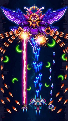 2、在玩家需要不断射击敌方飞船和外星生物,并躲避它们的攻击。