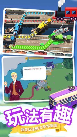 4、火车运行模拟游戏以卡通风格为主,玩家可以统筹安排好全部的轨道,确保列车顺利运行。