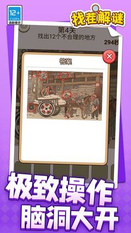 2、 找茬解谜手游是一款富有挑战性和趣味性的游戏。