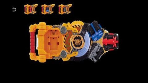 2、他的必杀技是GigantFinisher,需要三个“千兆武装升级带扣”装填于“强力构筑者升级带扣”的情况下,操作“强力构筑者升级带扣”,响起“GIGANTFINISHER”的音效发动,展开全部的武装,发动总攻击。
