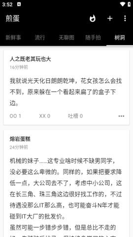 1、与其他应用不同的是,煎蛋网没有任何广告,用户可以专注于阅读内容。