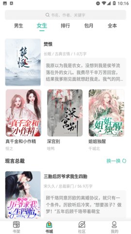 2、 除了书柜,宇辰小说纯净版还有【男女频道】的特色功能。