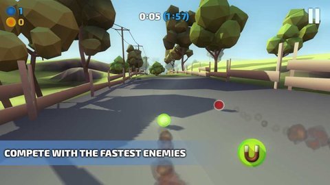 下坡小球冲锋是一款休闲跑酷类手游,玩家需要操控一颗小球从高坡冲下,收集沿途的道具来加快速度,躲避障碍物,在规定内抵达终点。共有20个关卡,每个关卡都设置了限制,玩家需要充分利用加速和起跳来完成任务。游戏的地图多样,包括泥土、草皮、岩石和水泥地等不同质地的跑道,玩家能够感受到不同跑道的手感差异。
