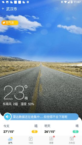 3、每次查看天气信息时,用户都能欣赏到美丽的风景照片,给人一种诗意的感觉。