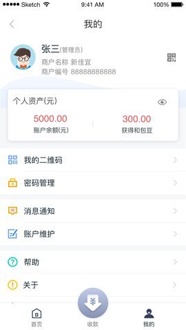 3、该应用为和包商户提供了交易受理、交易查询、收支明细查询等功能。