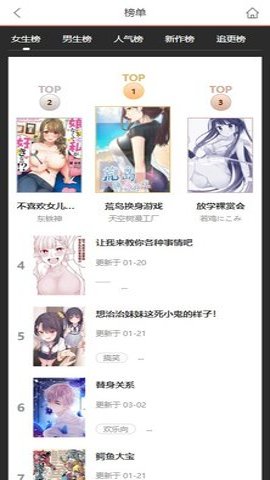 3、六九漫画App还根据漫画的受欢迎程度来排名一个榜,你就可以轻松找到好看的漫画作品了。
