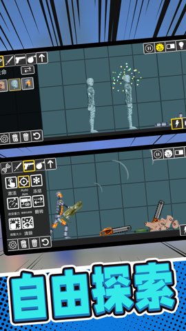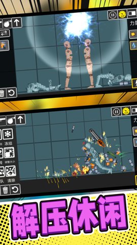 1、玩家可以尝试制作一个非常有趣的机器,需要挑选多种类型的武器,比如气球、注射器、锤子、剑,以及许多有趣的东西。