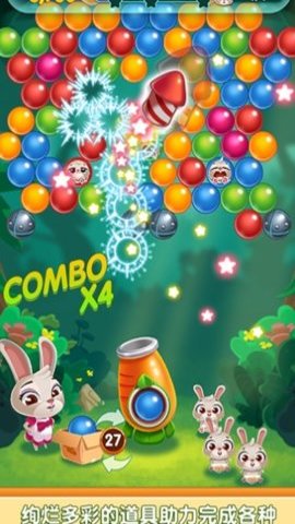 3、 游戏的核心玩法是通过发射泡泡球来消除更多的泡泡球,并获得胡萝卜奖励。