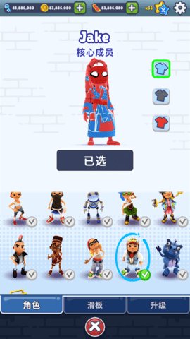 2、玩家可以根据自己的喜好选择不同的角色,还可以解锁海量地铁跑酷原生角色以及滑板。