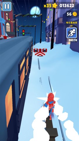 2、进入游戏后,玩家会发现游戏内的轨道被雪地覆盖,奔跑在雪地中会有一种铲雪地的既视感,非常酷炫。