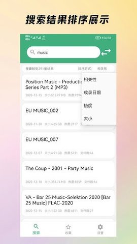 2、您可以根据自己的喜好对搜索结果进行排序展示,还可以将搜索结果保存到本地。