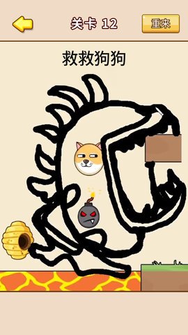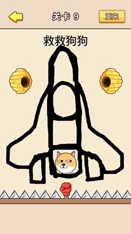 1、 在玩家需要通过画线的方式将所有的狗狗拯救出来。