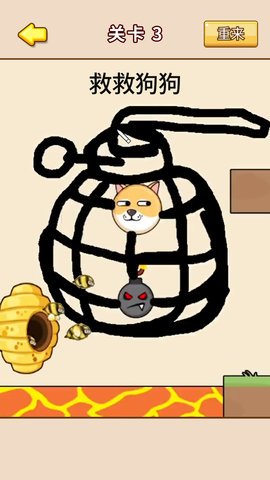 救救动物大挑战是一款让人放松又能锻炼大脑的休闲益智类手游。有各种趣味关卡,每个关卡的场景和设定都不同,玩家需要一一挑战并完成它们。 这款游戏采用了卡通魔性的画线救狗的玩法,玩家需要通过画线的方式来保护狗头,避免被蜜蜂攻击。