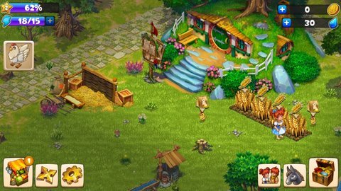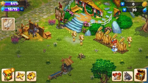 1、 这款游戏以清新卡通风格为特色,农场位于一个美丽的溪谷中,周围居住着和平热爱的居民。