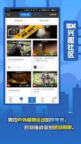 3、5x兴趣社区App专为男性用户设计,提供了广泛的资讯内容,包括但不限于汽车资讯、美食宠物、运动健身、户外旅行、数码开箱和摄影探险等,覆盖了百余种男性的日常兴趣。