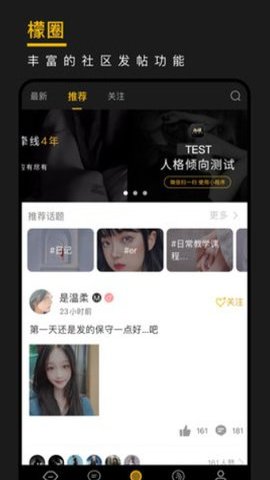 3、这个社区可以让用户更好地展示自己的个性和兴趣爱好,也可以通过与其他人的互动结识更多志同道合的朋友。
