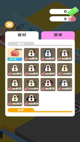 3、如果你太抠门,不舍得花钱解锁配料,那么披萨可能会缺斤少两,客人对我们的评价也会相应降低。