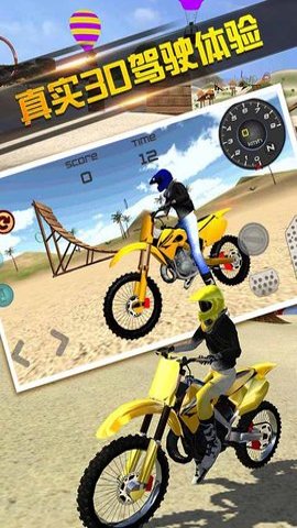 2、骑上摩托车,乘坐快速摩托车,在巨大的坡道上进行各种棘手的特技动作。