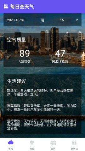 4、 除了天气预报功能外,每日查天气还提供了日历和倒计时功能。