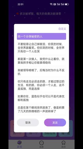 3、 树洞聊天交友是一个功能丰富、安全可靠的交友应用。