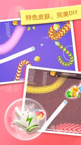 1、 在玩家需要长按屏幕来加速贪吃蛇的移动,通过巧妙的走位让蛇身被别的蛇撞上,从而吃掉对方收集的金币,迅速变长并合成更多的小蛇。