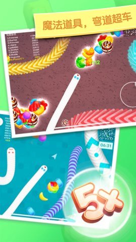 2、 贪吃蛇蛇冲刺是一款简单易操作的游戏,让玩家在小搏大的战局中尽全力将自己的蛇升级到满级。