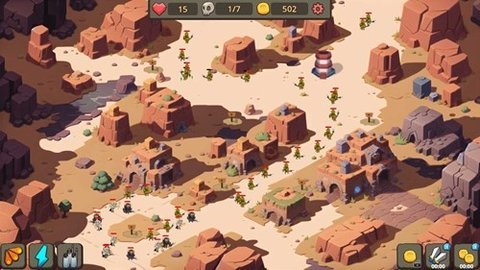 4、当敌人被冰冻后,它们会暂时停止移动和攻击,给其他塔提供了更多的来进行攻击,从而大大增加了整个防线的防御能力。