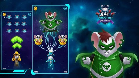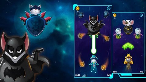 2、 在这款玩家将扮演一只可爱的猫咪,驾驶着强大的太空飞船在太空中与外星人展开激烈的战斗。