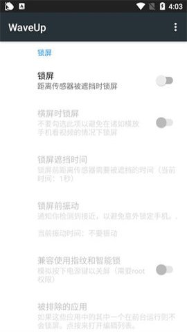 1、如果用户遮挡距离传感器1秒钟(或指定),WaveUp还会自动锁定手机并关闭屏幕,避免了意外操作。