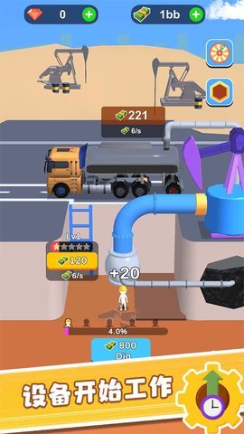 2、 在采油厂你可以使用赚取到的金币去购买更加先进的装备,更新你的开采设备,提高开采效率。