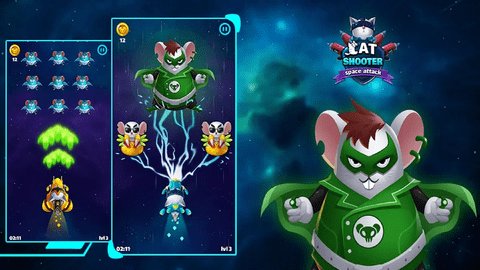 2、 喵星人入侵者是一款飞行射击手机游戏,具有多样的关卡设计和挑战模式,玩家可以扮演可爱的猫咪,在太空中与外星人进行战斗。
