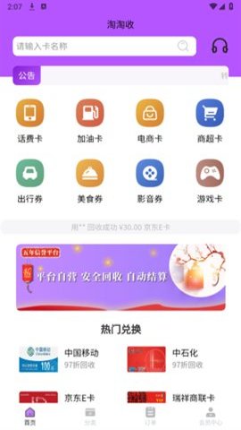 2、用户可以在该平台上享受到优质的回收体验,将闲置的卡券变现,实现资金的回收和利用。