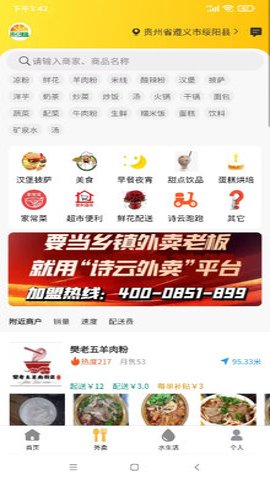 1、 诗云外卖平台上有超多的本地商家入驻,让用户在生活中有不同需求的时候都可以来平台上下单点外卖。