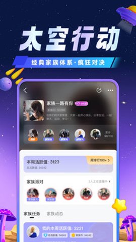 1、太空行动交友还有家族互动功能,用户可以边玩边互动,获得沉浸式的交友体验。
