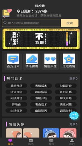 2、 轻松聊恋爱话术是一款恋爱话术软件平台,用户可以通过该应用学习进行搭讪聊天,提高自己的聊天技巧。