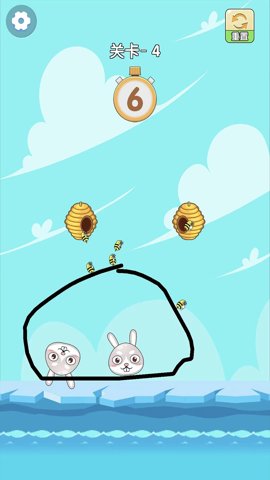3、玩家可以使用手机或平板电脑上的屏幕触控来进行操作,画出线条来保护兔头不被蜜蜂伤害。