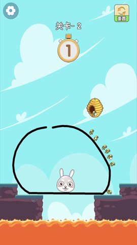 1、玩家需要注意画出的线条不能碰到蜜蜂,否则会导致兔头受到伤害,需要重新挑战当前关卡。