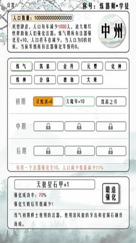 3、炼制的装备可以升级和强化,进一步提高玩家的战斗能力。
