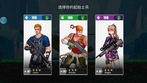 4、玩家可以操作自己喜欢的角色进行横版射击闯关,操控角色在平面的地图中进行射击游玩。