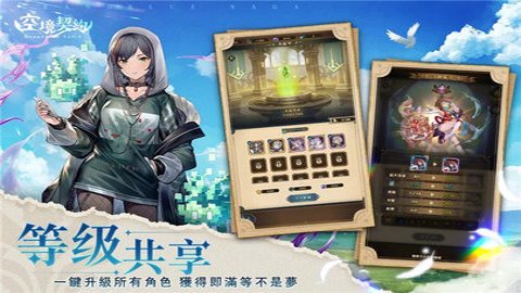 1、英灵幻境采用了共享等级和一键升级的机制,让玩家轻松养肝,随意组队进行探险。