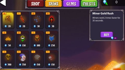 2、当玩家金币不足时,可以使用矿工狂热技能来快速获得金币。