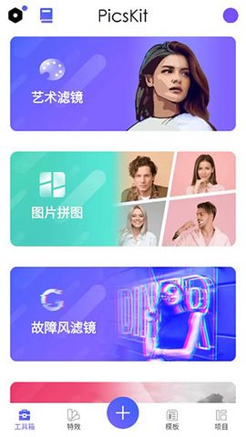 2、 P图大师还提供了多种特效功能,如艺术滤镜、故障风等。