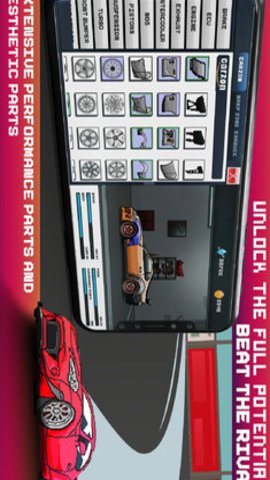 4、玩家还可以配置汽车的引擎、变速箱、悬架、涡轮增压、硝基增压等,实际机制的调整让玩家能够根据赛道和对手的不同选择合适的战术和车辆,以获得更好的成绩。