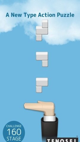 3、与传统的俄罗斯方块不同的是,玩家不再控制方块的位置和形态,而是控制着下方的手掌去接方块。