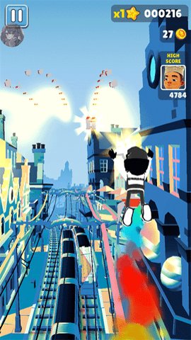 2、为了躲避障碍物和警察的追捕,玩家需要灵活控制主角进行各种操作,包括跳跃、转向、滑行、跑步等。